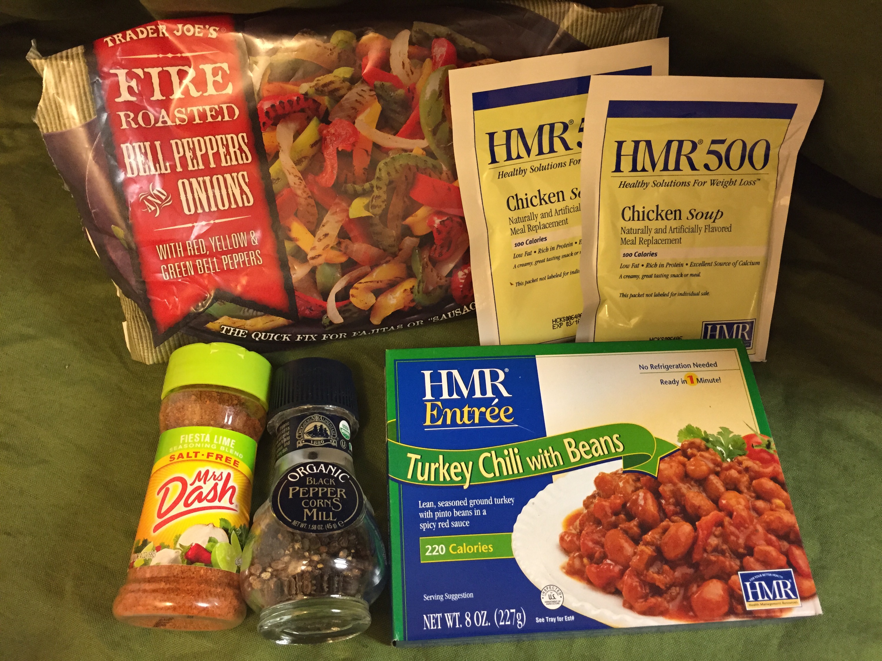 A few weeks ago we had a homework assignment to combine the HMR Program chicken soup with an entree. This increases our fullness level which makes those calories last longer. Plus it’s delicious!